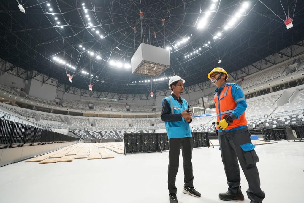 | Petugas PLN memastikan keamanan dan keandalan sistem kelistrikan lokasi venue Indoor Multifunction Stadium (IMS) Indonesia Arena di Gelora Bung Karno (GBK) Senayan, Jakarta. FOTO DOK PLN |