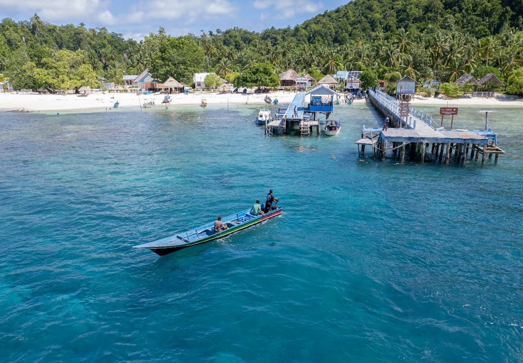 Pemandangan dari atas saat kapal nelayan Kampung Sauwandarek akan berangkat menangkap ikan menggunakan mesin tempel listrik. FOTO DOK PLN