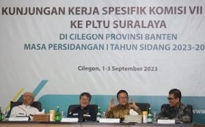 energikita.id – PT PLN (Persero) menerima kunjungan kerja spesifik Komisi VII Dewan Perwakilan Rakyat Republik Indonesia (DPR RI) ke Pembangkit Listrik Tenaga Uap (PLTU) Suralaya, di Cilegon, Banten pada Jumat (01/09). Dalam kunjungan tersebut, Ketua Komisi VII DPR RI, Sugeng Suparwoto menilai tata kelola operasional PLTU Suralaya telah sesuai dengan aturan sehingga mampu meminimalisir emisi karbon yang dikeluarkan.