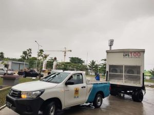 Mobilisasi UPS 100 KVA untuk antisipasi adanya gangguan pasokan listrik pada pagelaran Laga Proliga 2024 di GOR Terpadu Ayani Pontianak. FOTODOKPLN